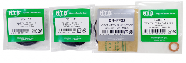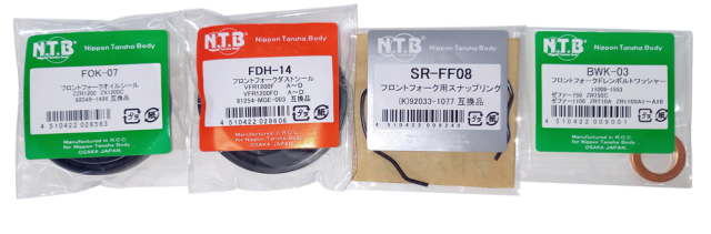 Front fork oil seal, dust seal, snap ring and drain bolt washer, 2 pcs of each item.