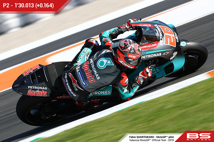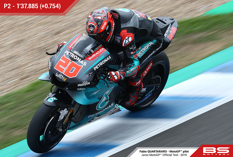 第5戦スペインGPの開催地であるヘレス・サーキット‐アンヘル・ニエトでプライベートテストが行われました。ファビオ・クアルタラロ選手は1日目に1分37秒台を3回、トップと0.754秒差の2番手を記録し、総合4番手となりました。