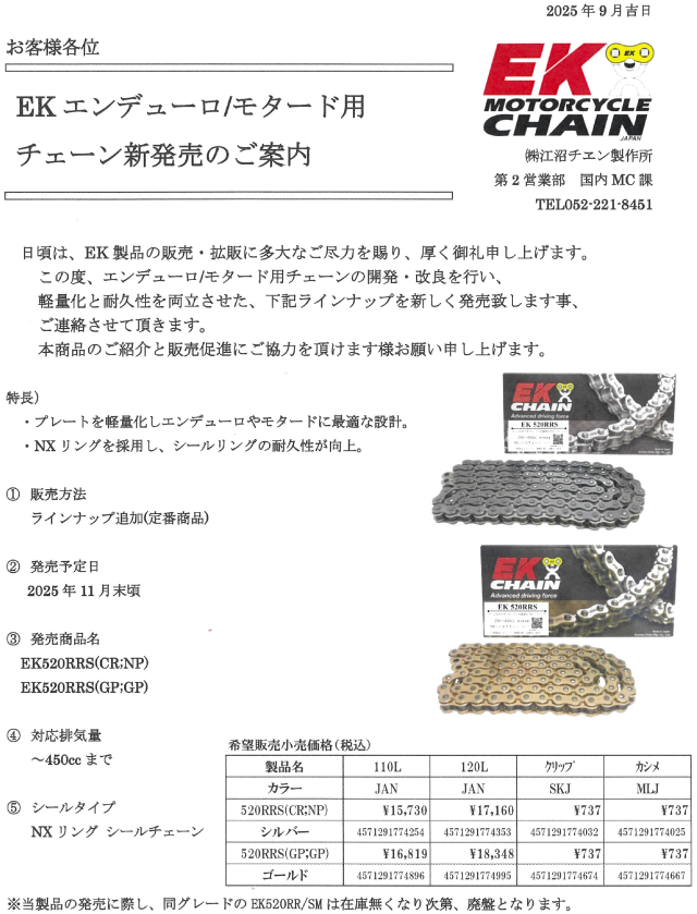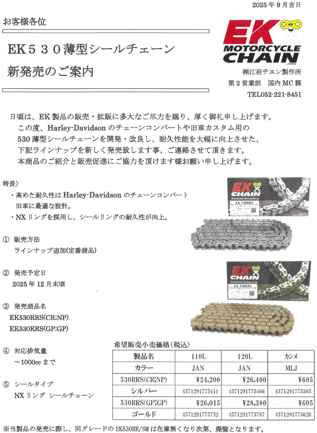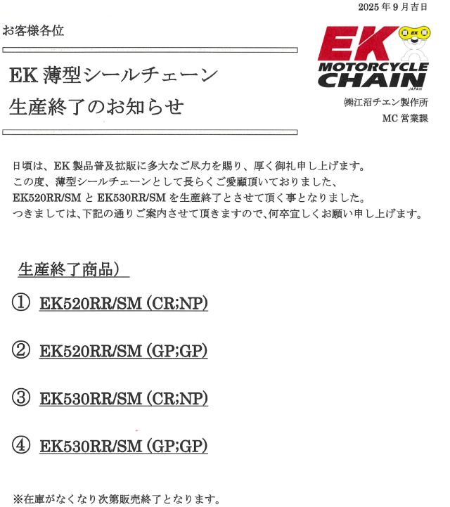 EKチェーン新発売のご案内と生産終了のお知らせ