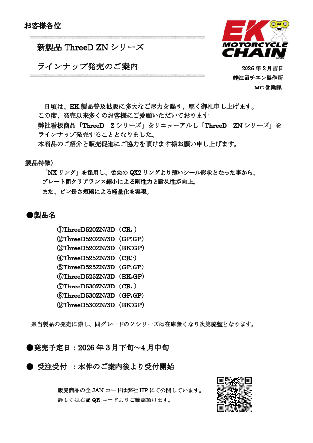 EKチェーン 新製品ThreeD ZNシリーズ ラインナップ発売のご案内